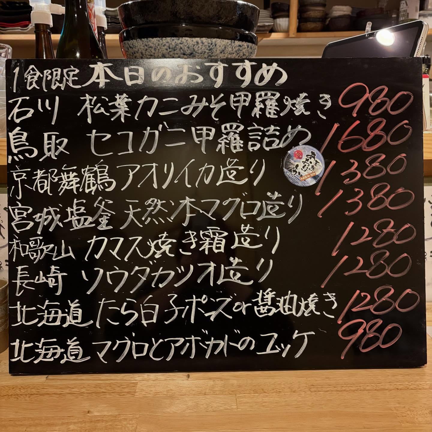 本日のおすすめ ︎鳥取 セコガニ甲羅詰め ︎和歌山 カマス焼き…