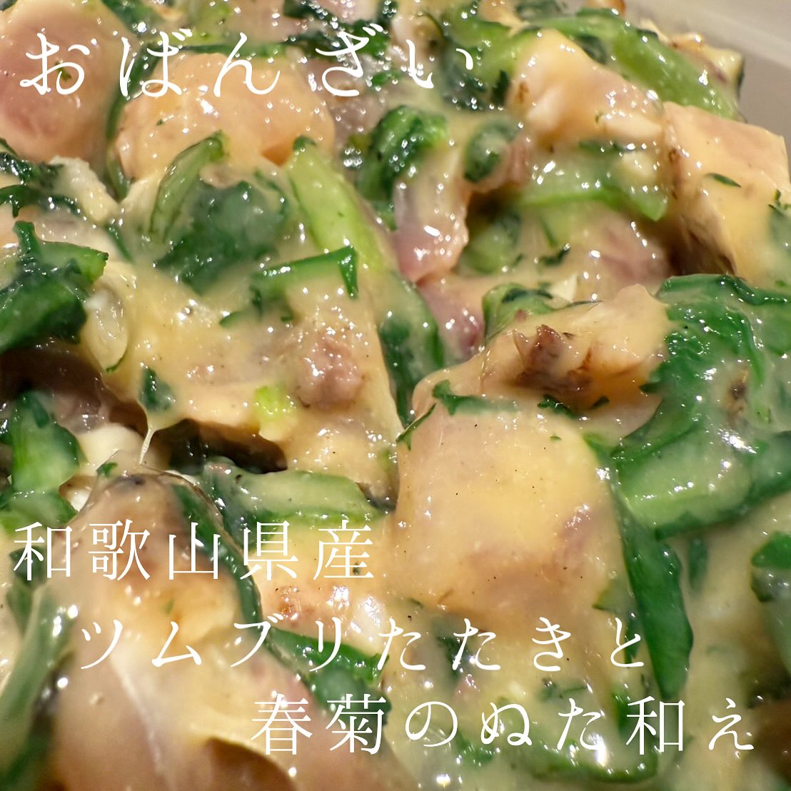 ︎和歌山ツムブリたたきと春菊のぬた和え