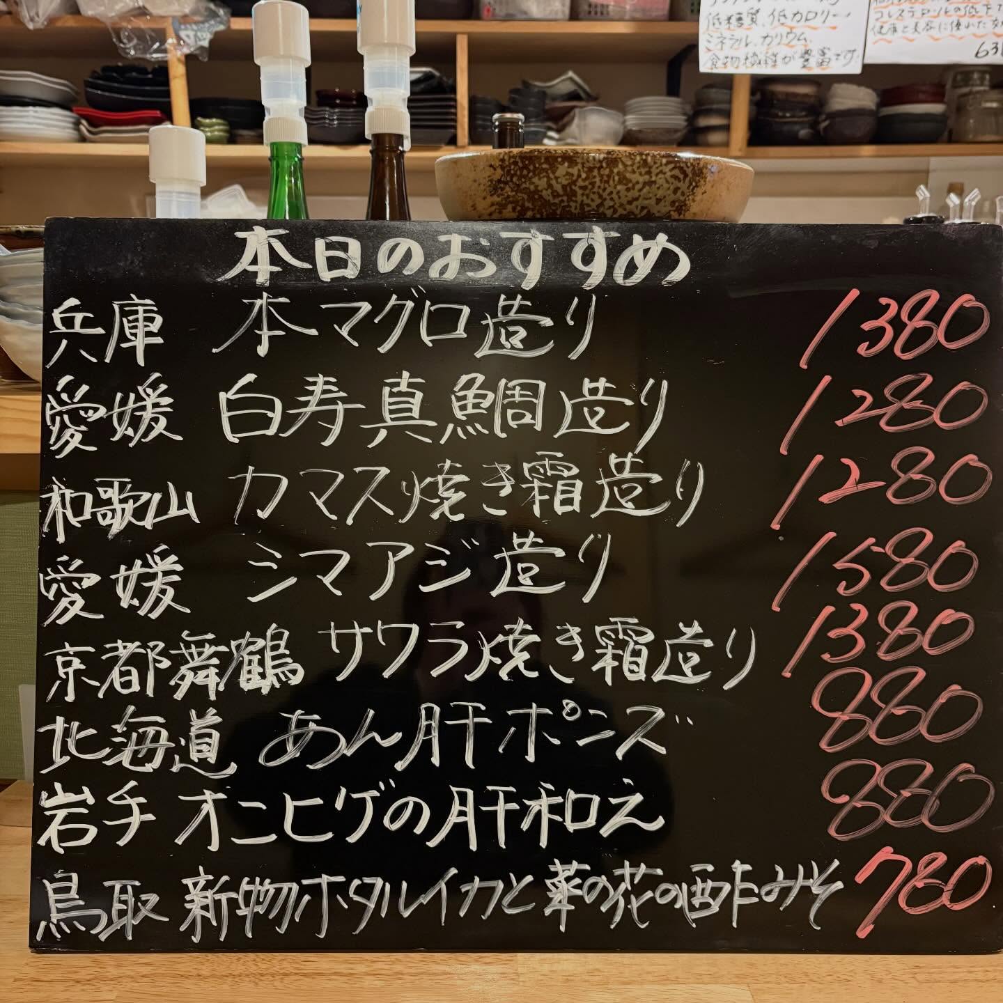 本日のおすすめ ︎京都舞鶴 サワラ焼き霜造り ︎愛媛 シマアジ…