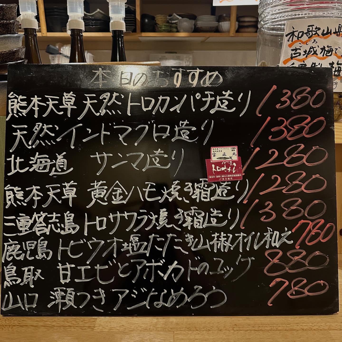 本日のおすすめ ︎北海道 サンマ造り ︎三重答志島 トロサワラ…