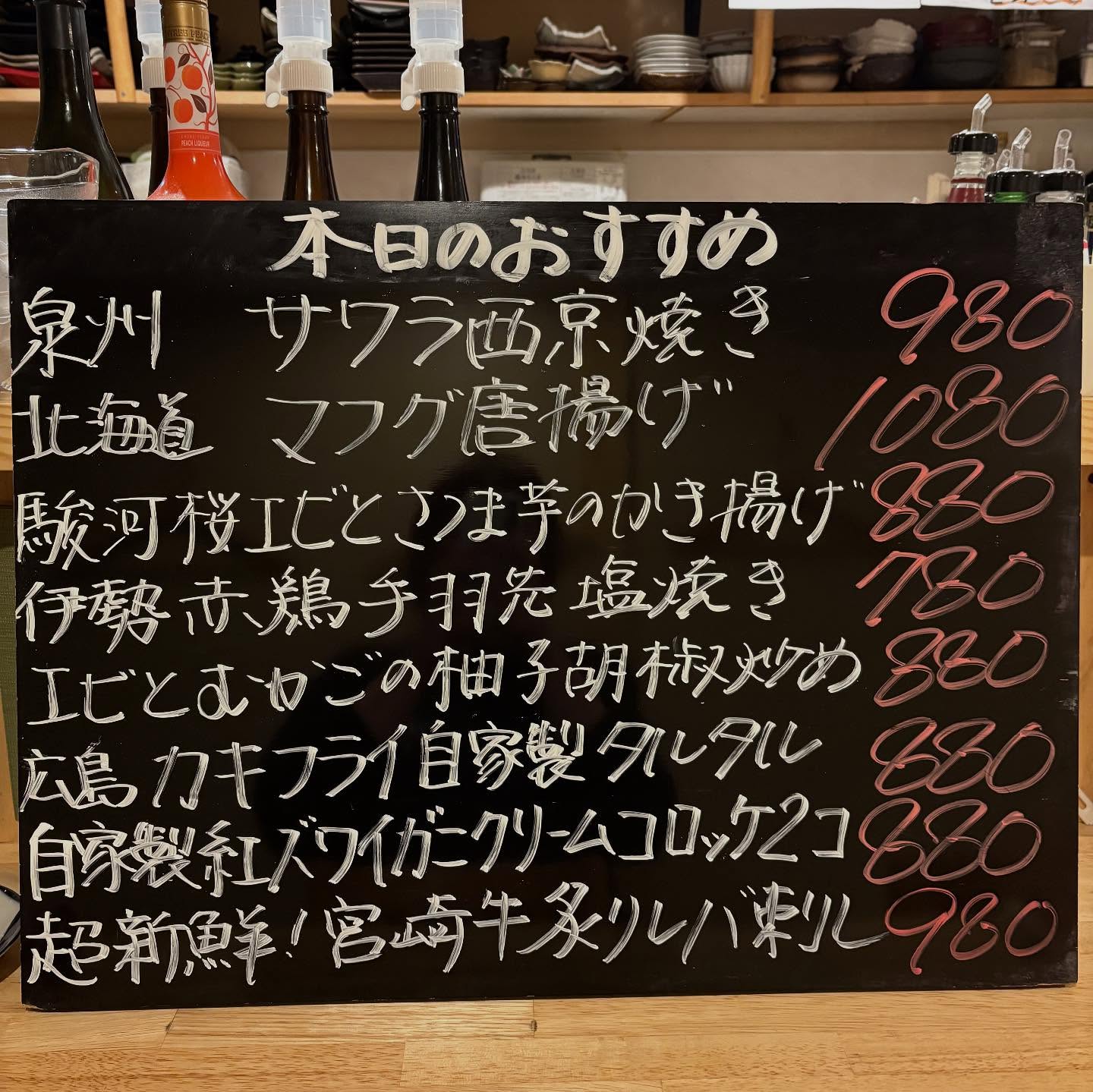 本日のおすすめ ︎和歌山 活アジ造り ︎長崎 本マグロホホ肉炙…