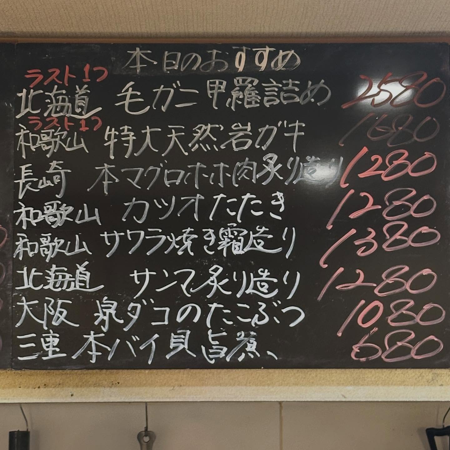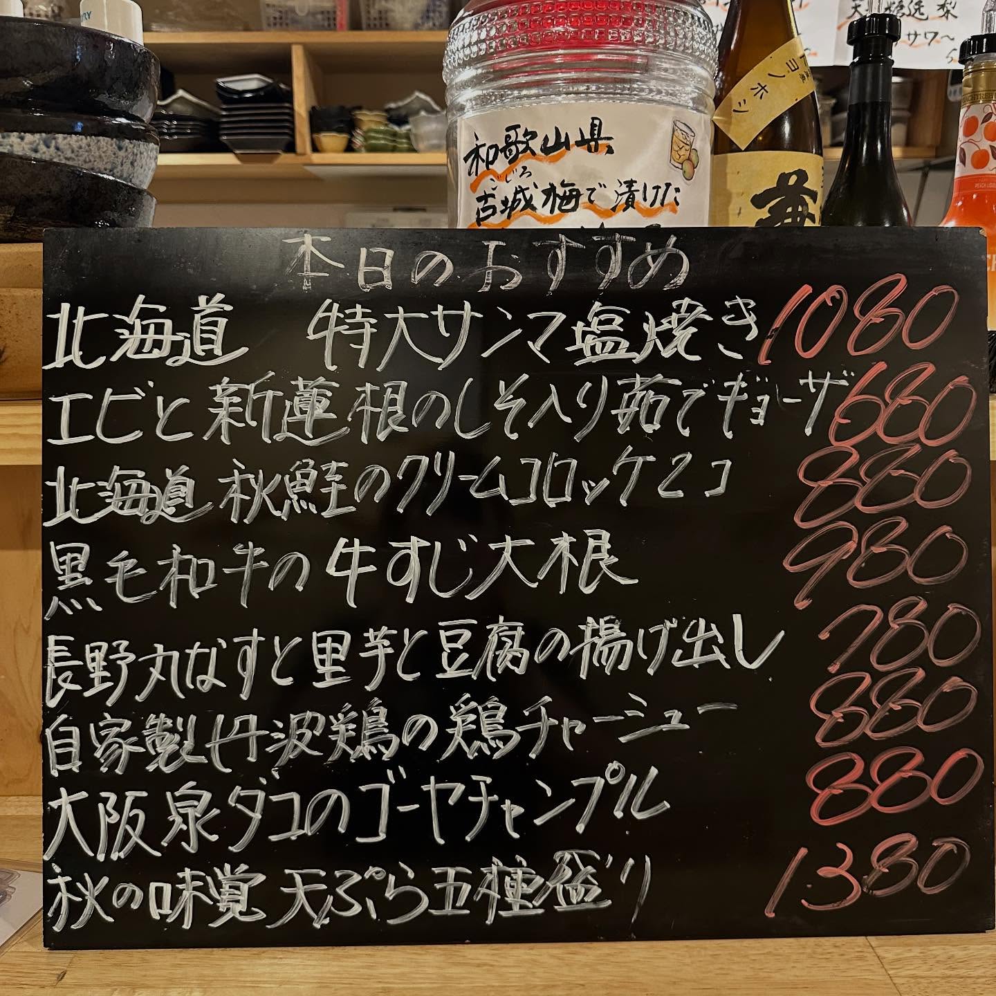 本日のおすすめ ︎大阪 泉ダコのタコぶつ ︎北海道 サンマ炙り…