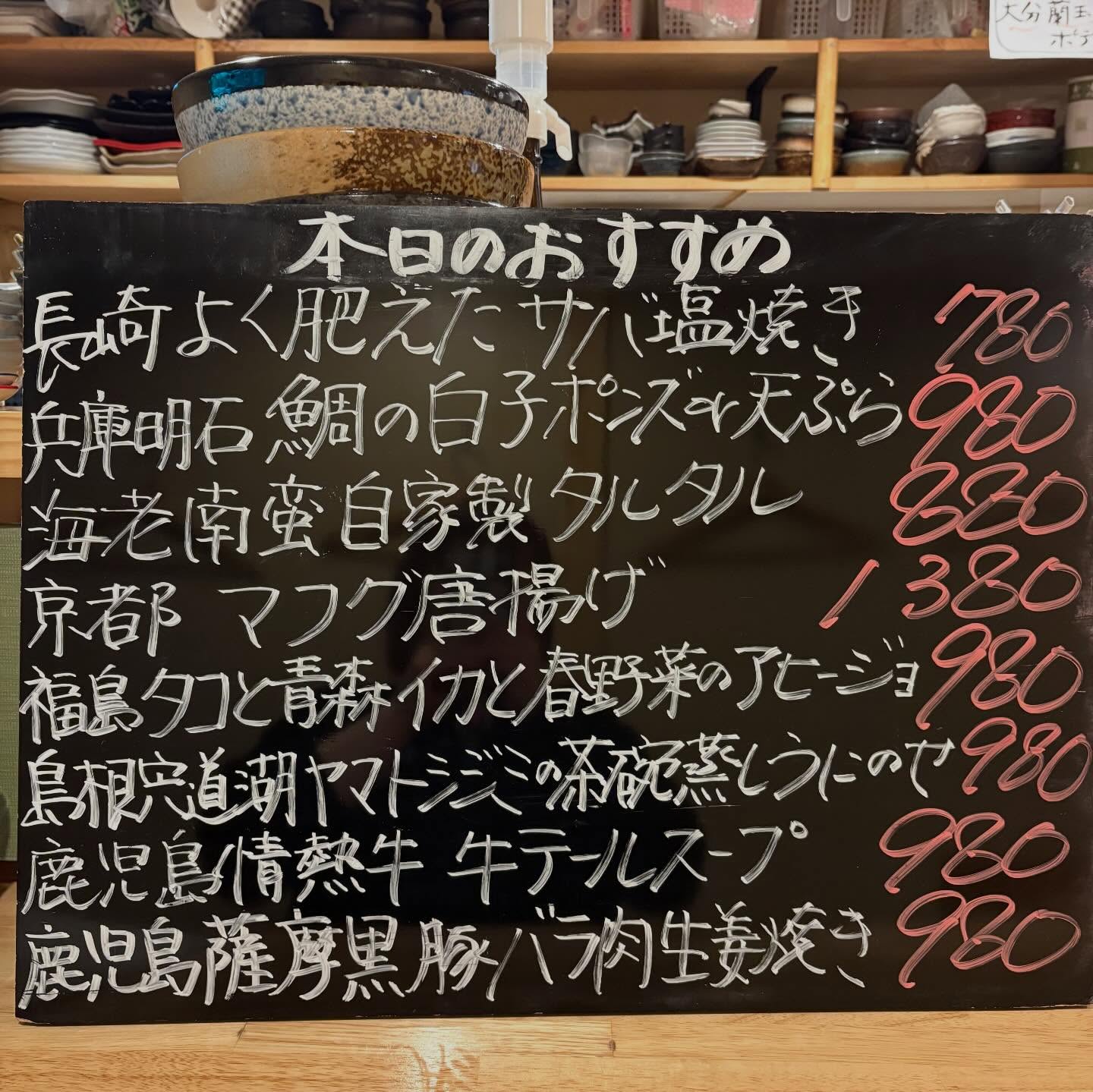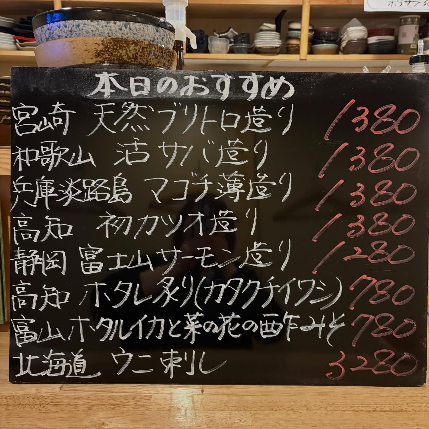 本日のおすすめ ︎宮崎 天然ブリトロ造り ︎和歌山 活サバ造り …