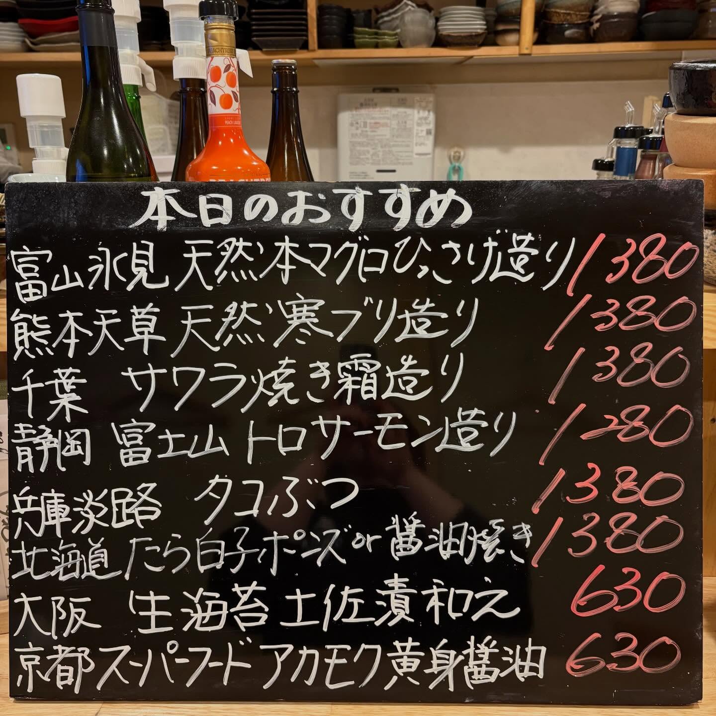 本日のおすすめ ︎富山氷見 天然本マグロひっさげ造り ︎兵庫淡…