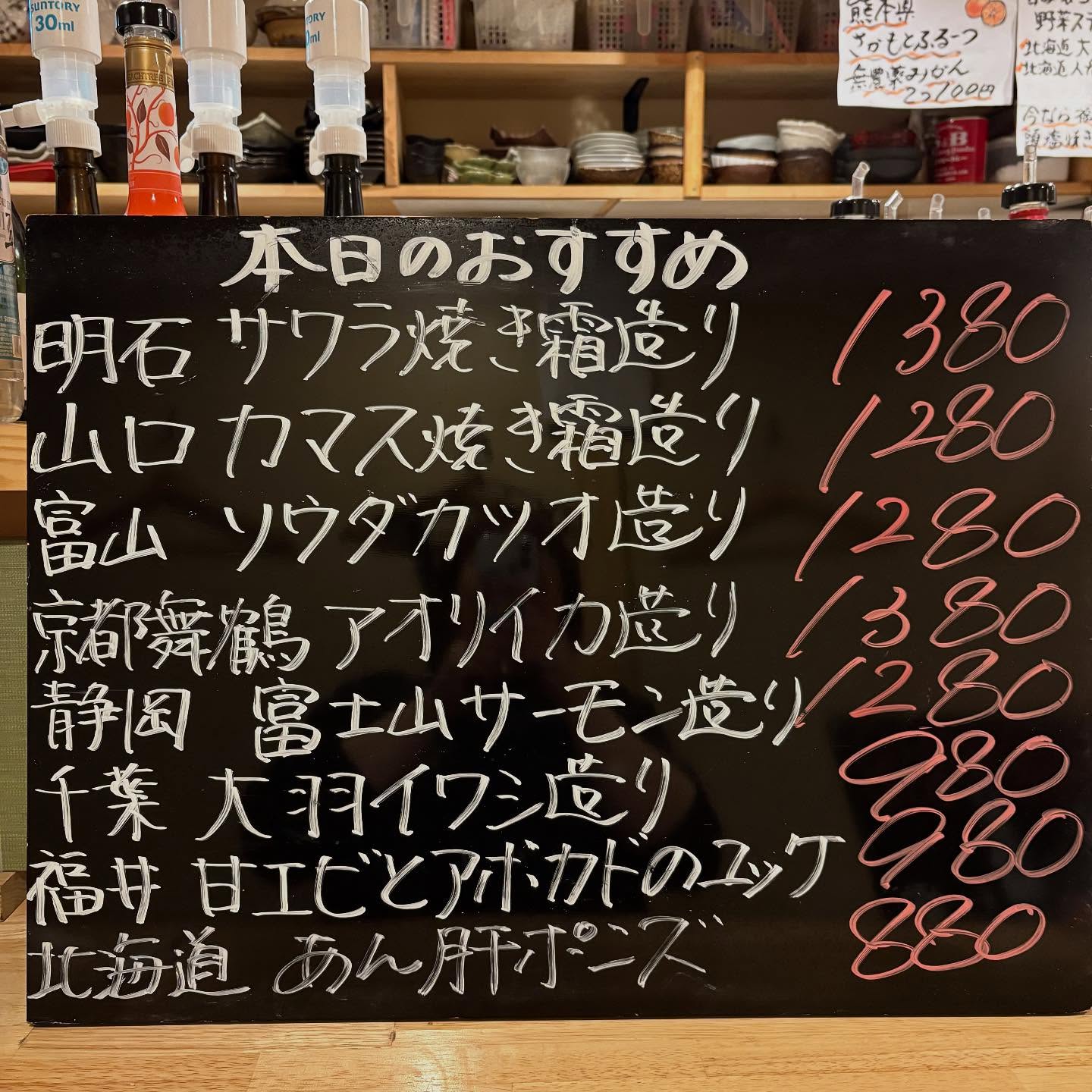 本日のおすすめ ︎山口 カマス焼き霜造り ︎静岡 富士山サーモ…