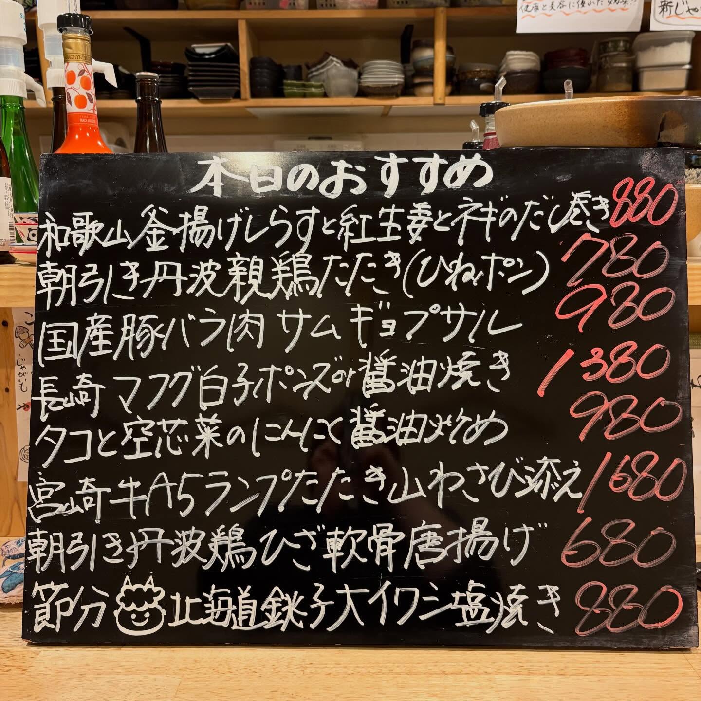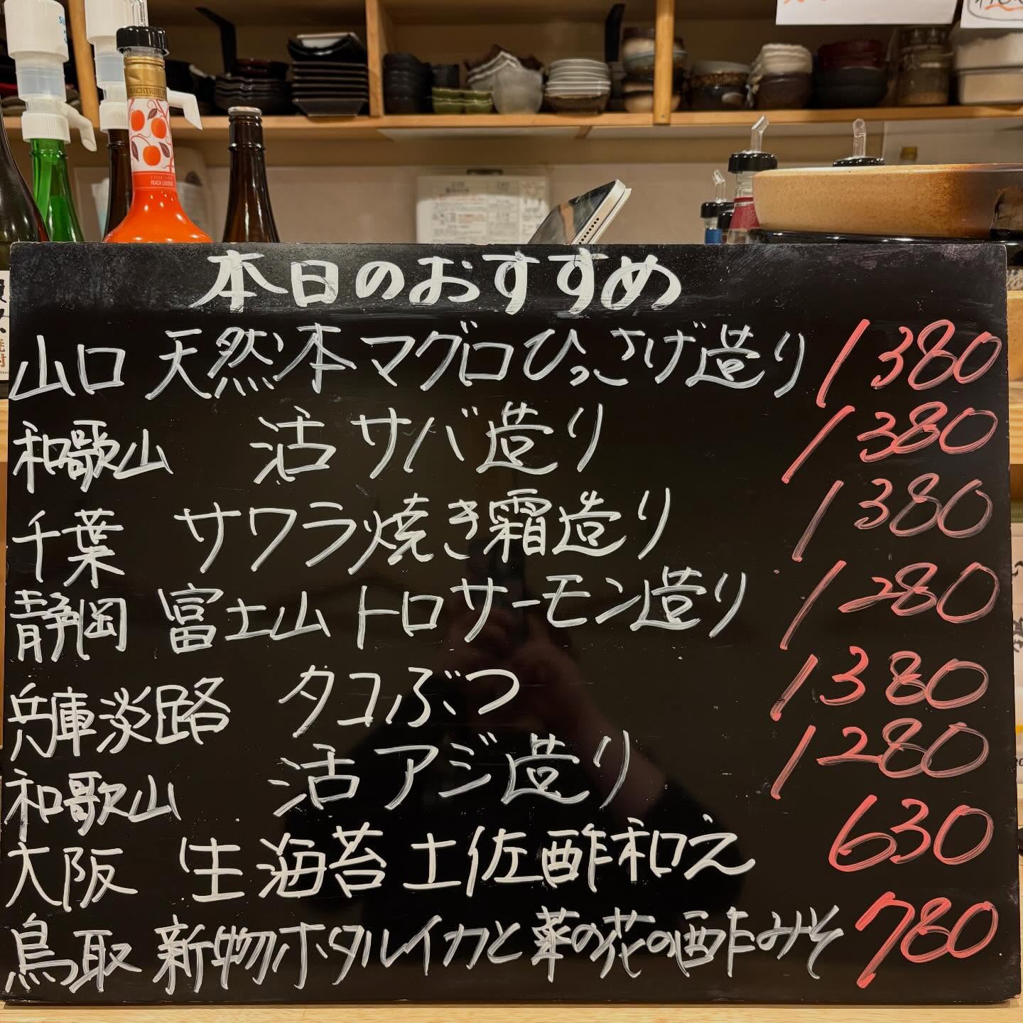 本日のおすすめ ︎山口 天然本マグロひっさげ造り ︎和歌山 活…