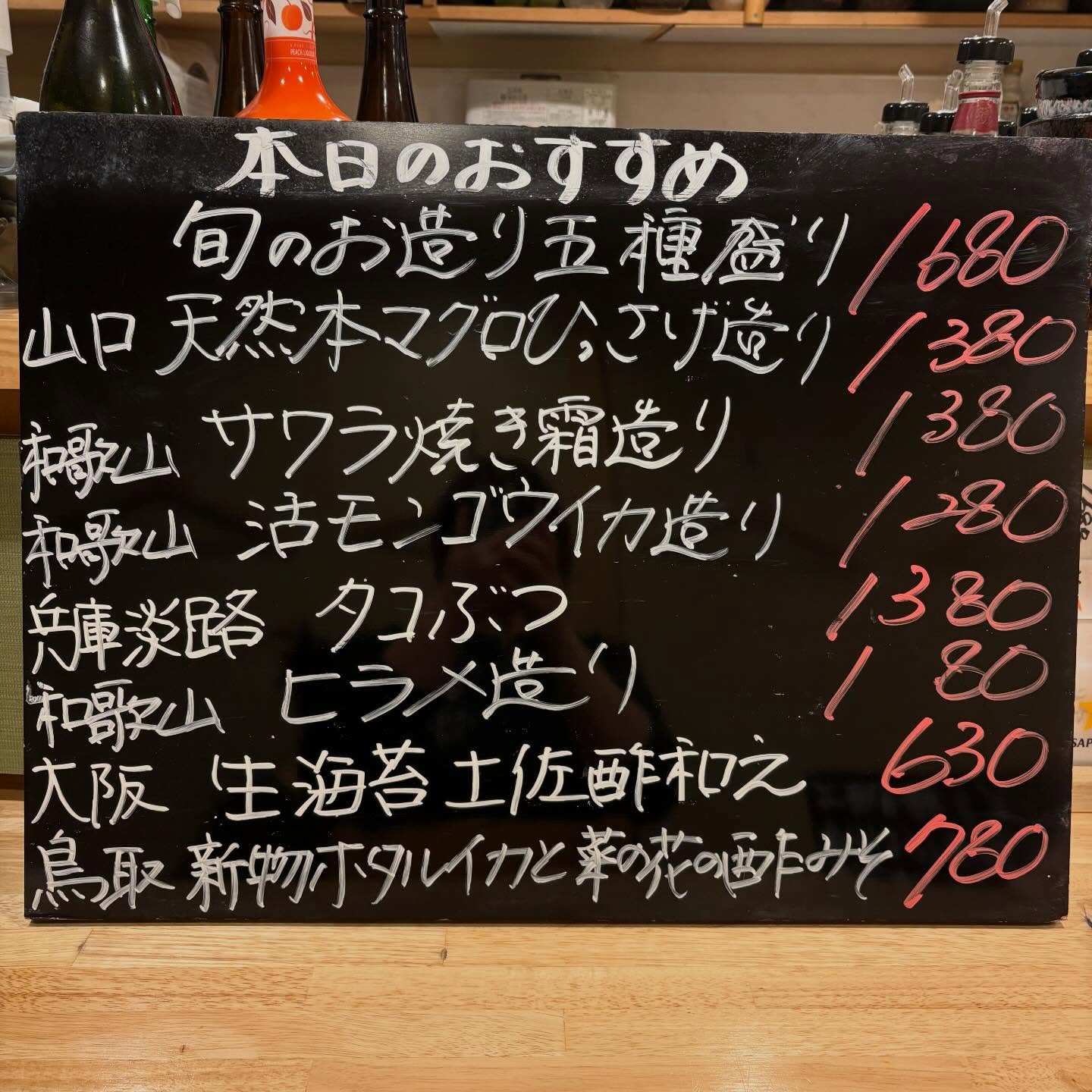 本日のおすすめ ︎山口 天然本マグロひっさげ造り ︎和歌山 活…