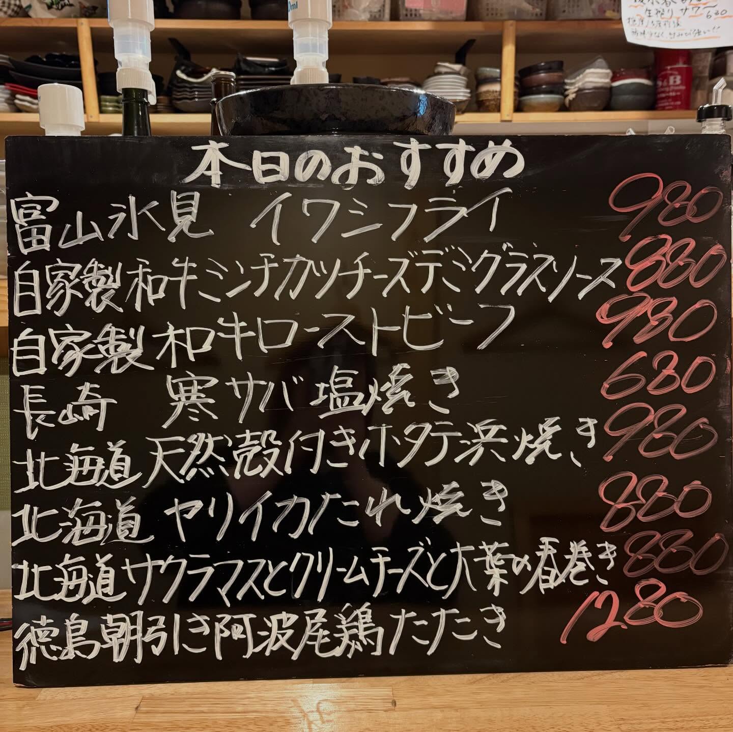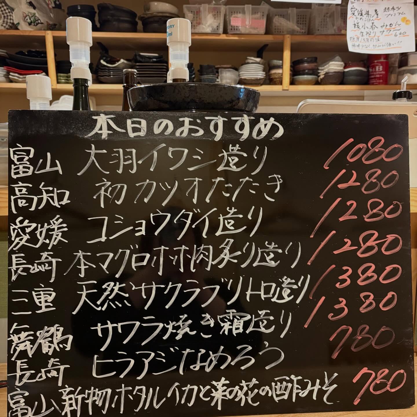 本日のおすすめ ︎愛媛 コショウダイ造り ︎舞鶴 サワラ焼き霜…