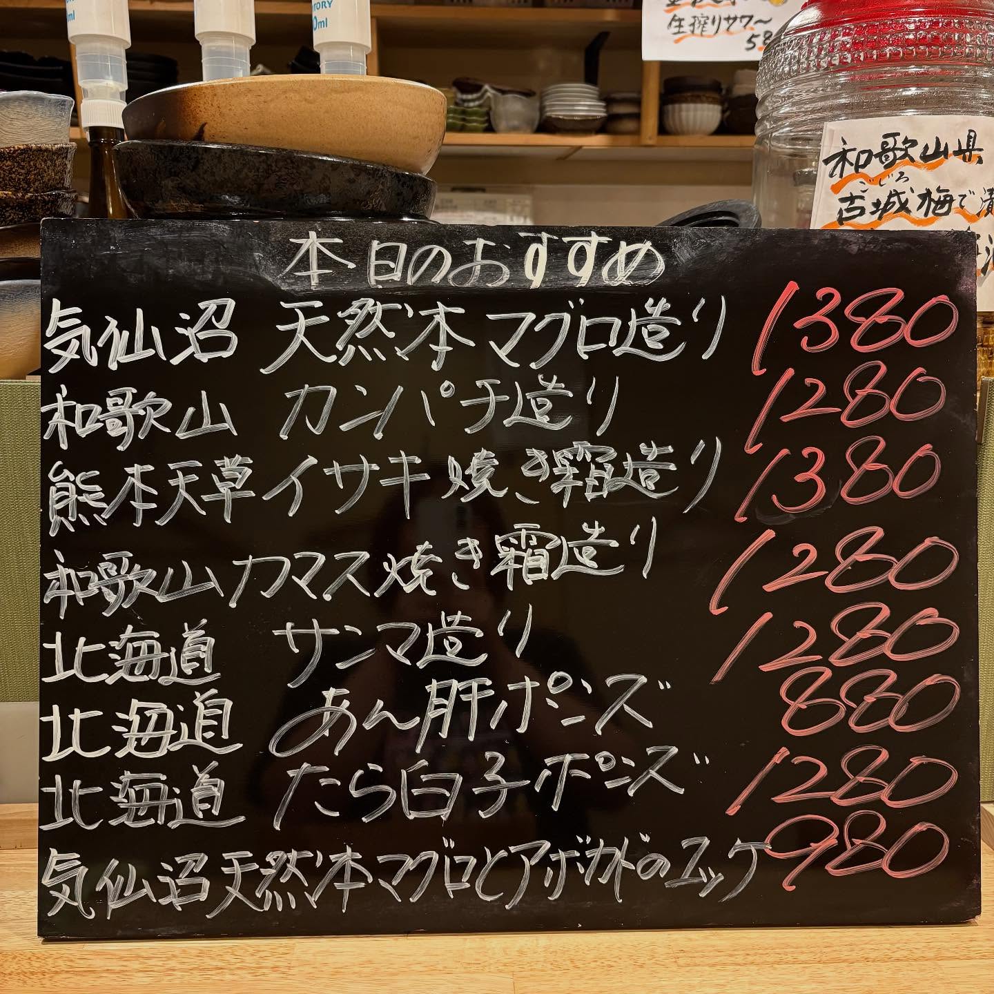 本日のおすすめ ︎気仙沼 天然本マグロ造り ︎和歌山 カマス焼…