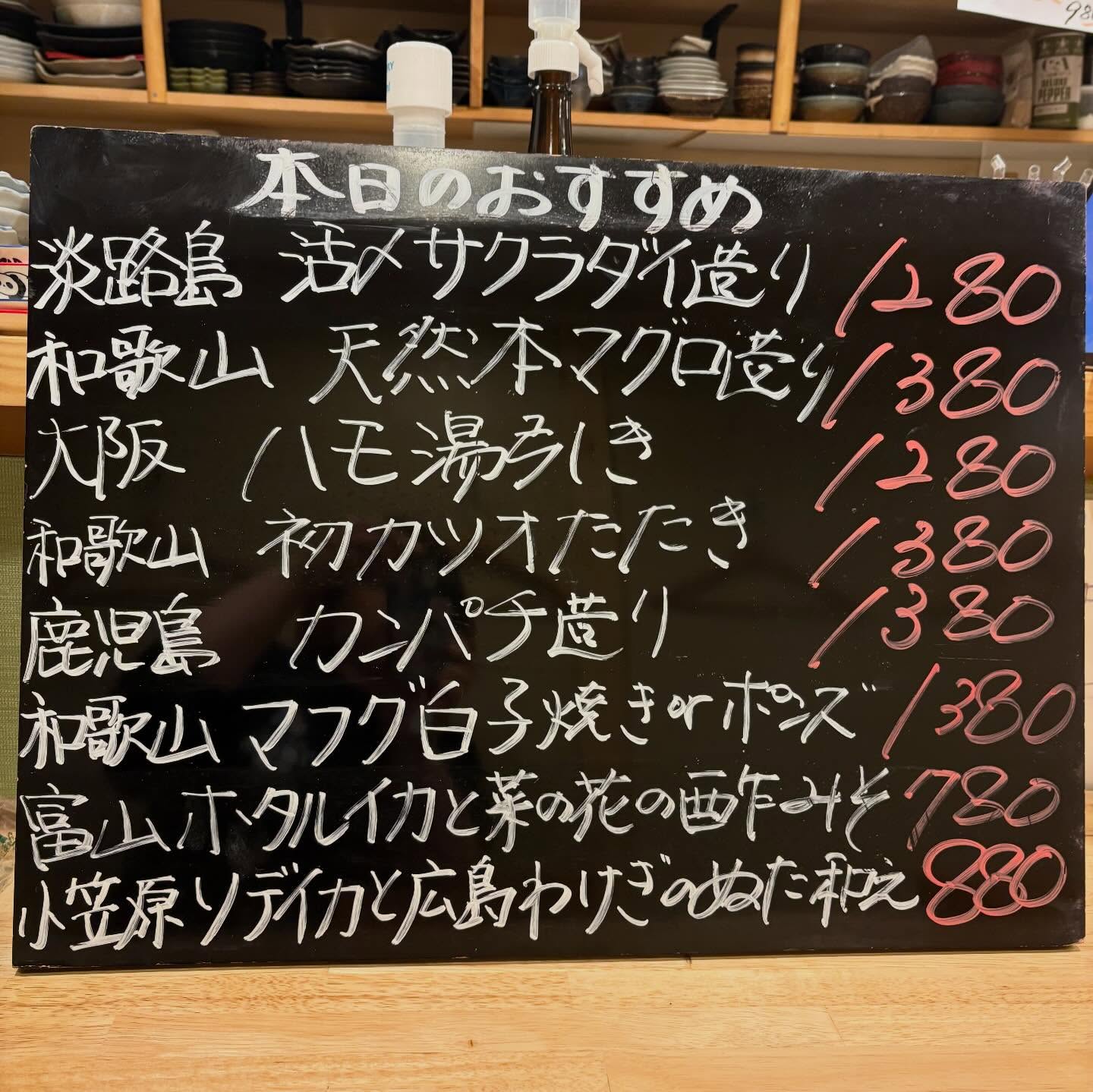 本日のおすすめ ︎淡路島 活〆サクラダイ造り ︎和歌山 天然本…