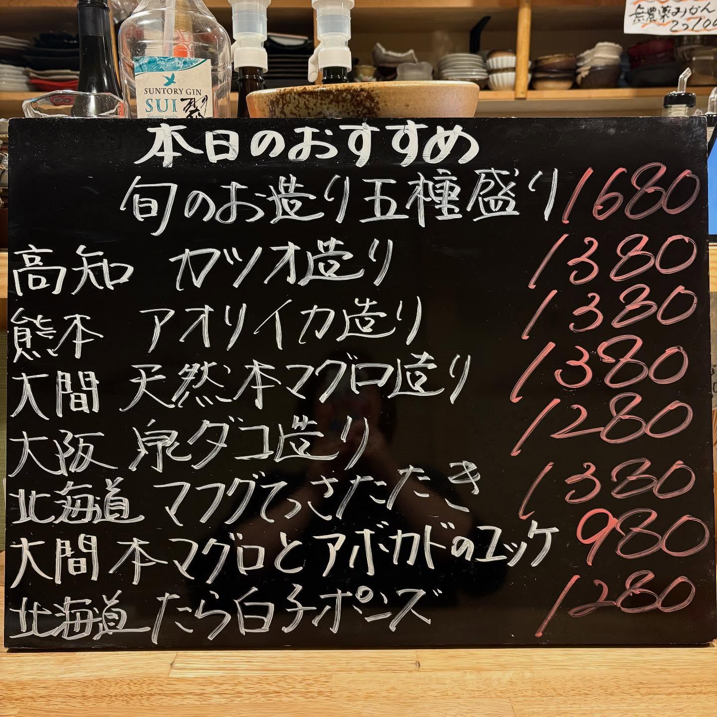 本日のおすすめ ︎熊本 アオリイカ造り ︎高知 カツオたたき ︎…