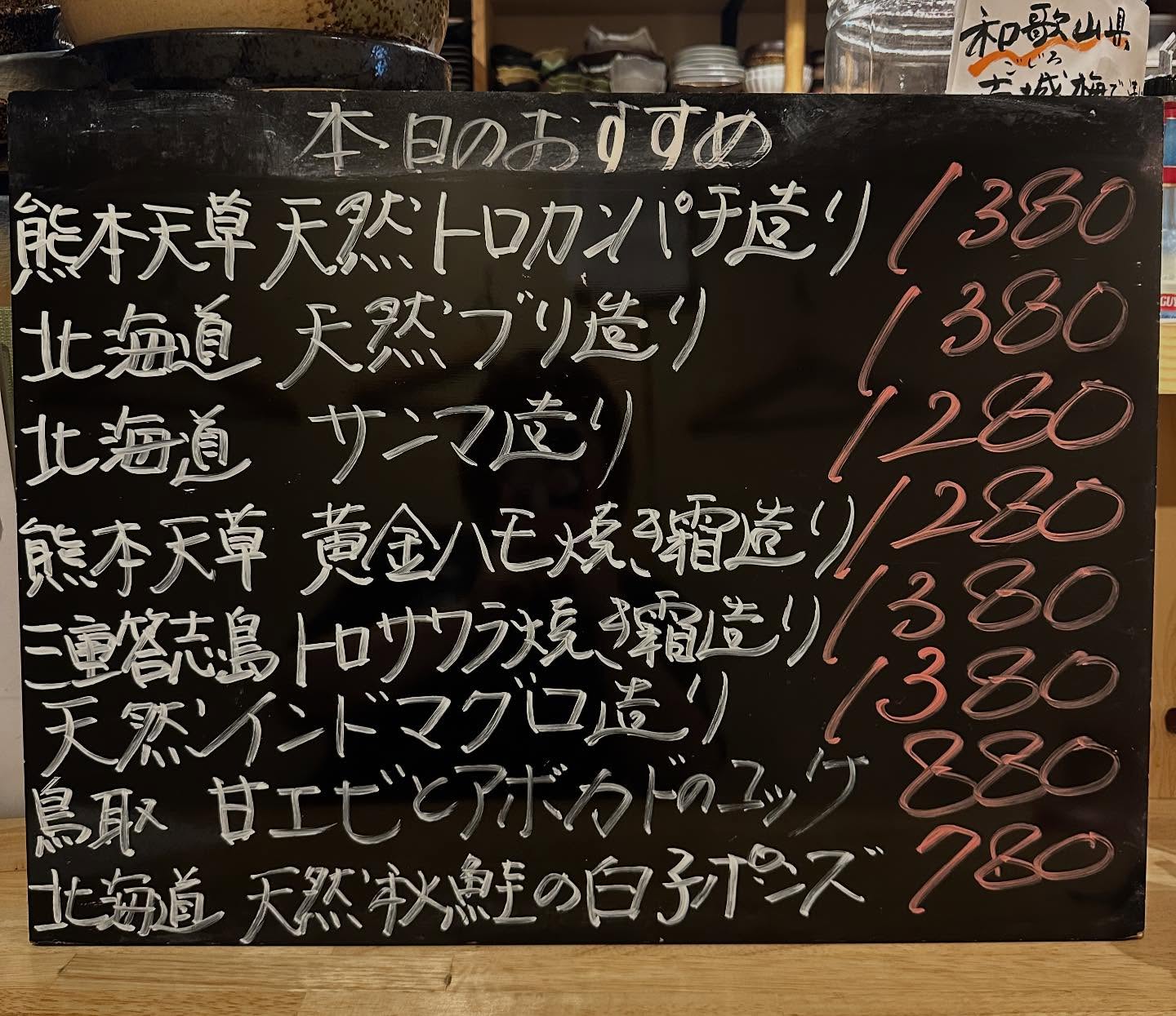 本日のおすすめ ︎熊本天草 トロカンパチ造り ︎北海道 サンマ…