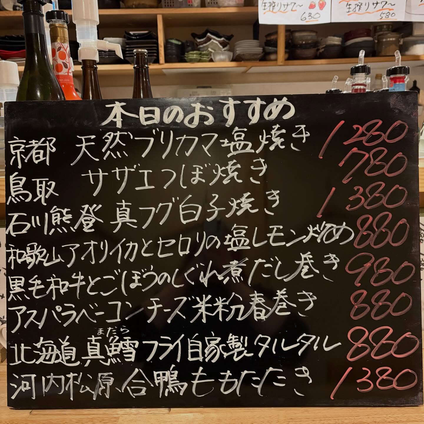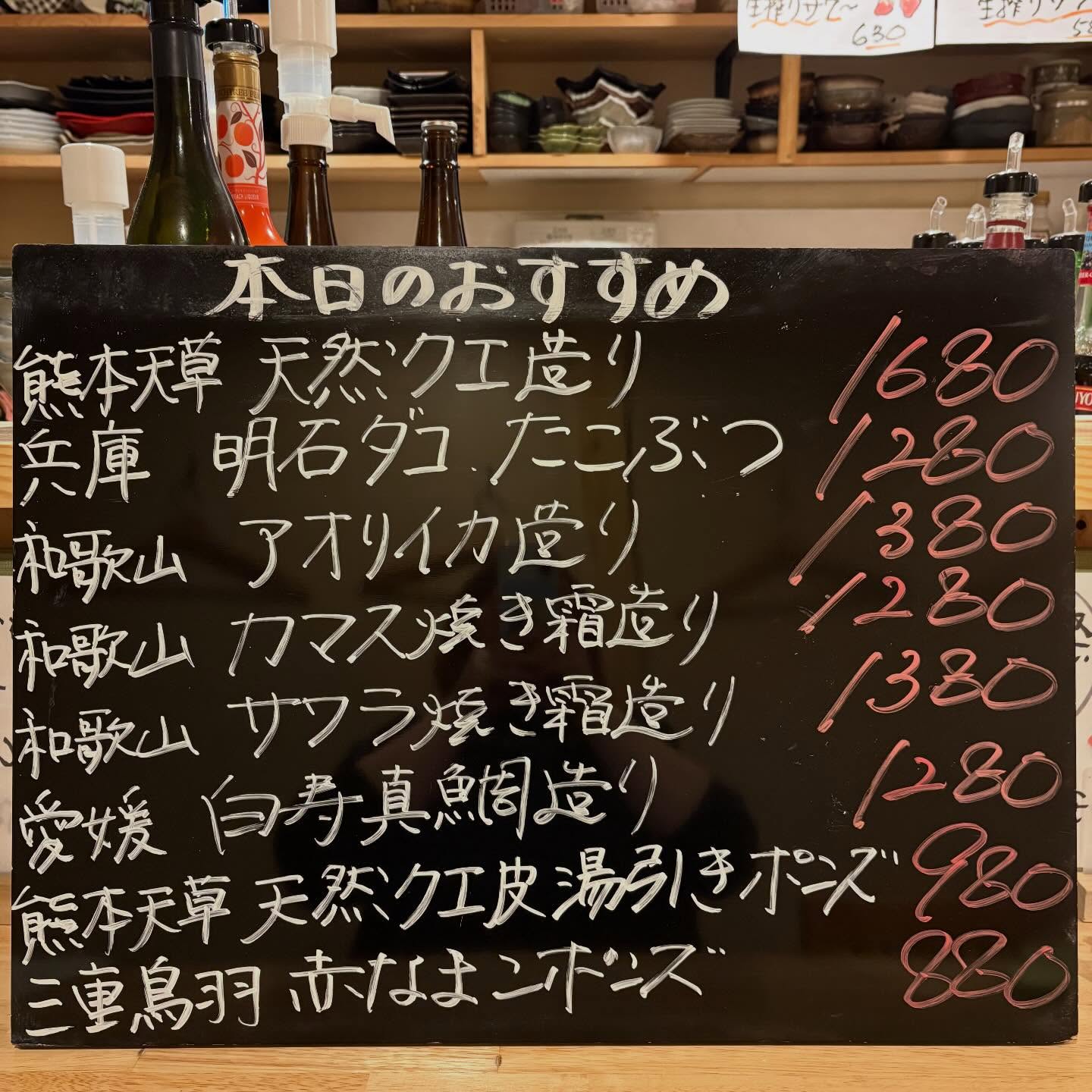 本日のおすすめ ︎熊本天草 天然クエ造り ︎和歌山 アオリイカ…