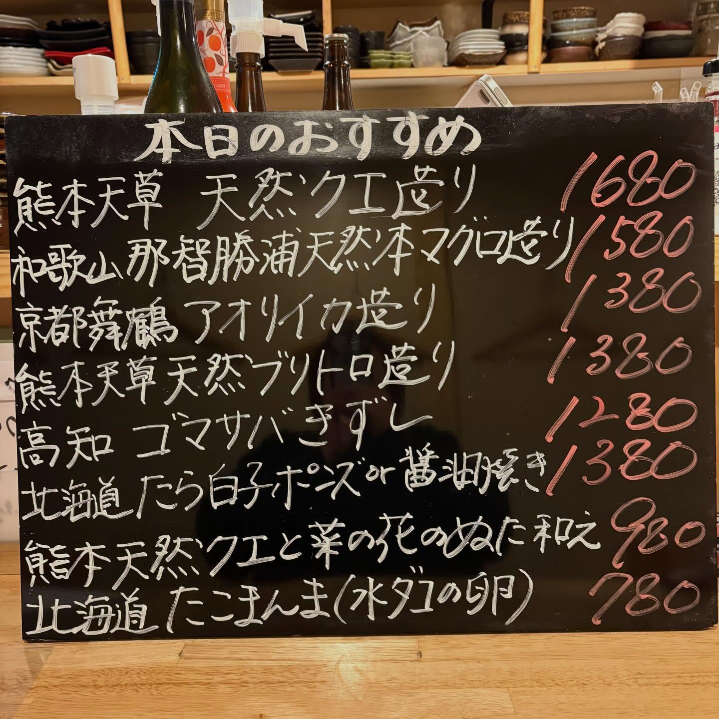 本日のおすすめ ︎熊本天草 天然ブリトロ造り ︎京都舞鶴 アオ…
