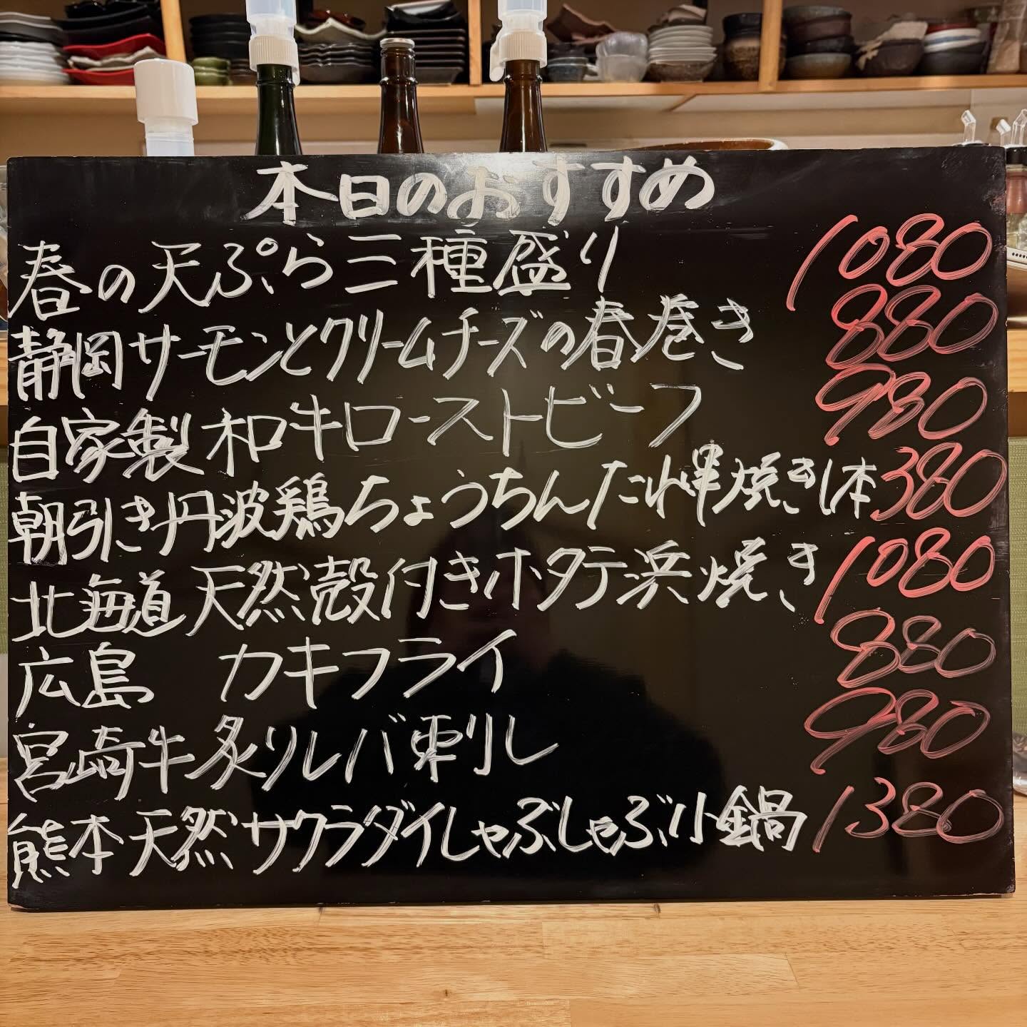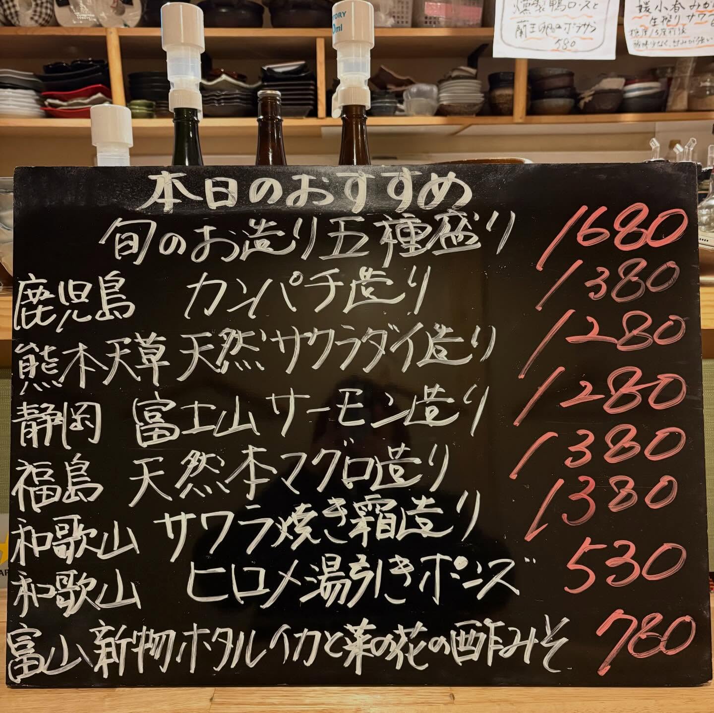 本日のおすすめ ︎福島 天然本マグロ造り ︎和歌山 サワラ焼き…