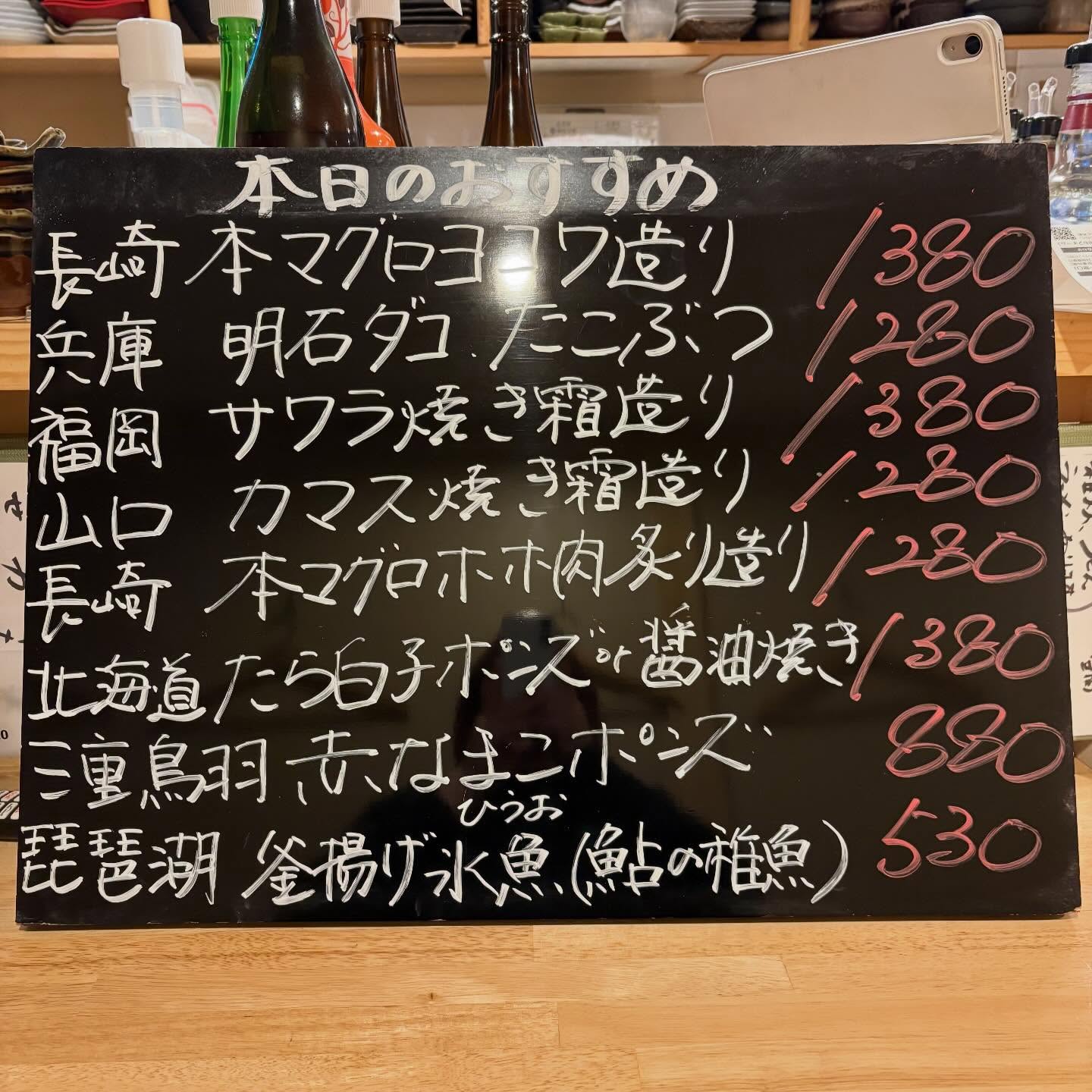 本日のおすすめ ︎長崎 本マグロヨコワ造り ︎山口 カマス焼き…