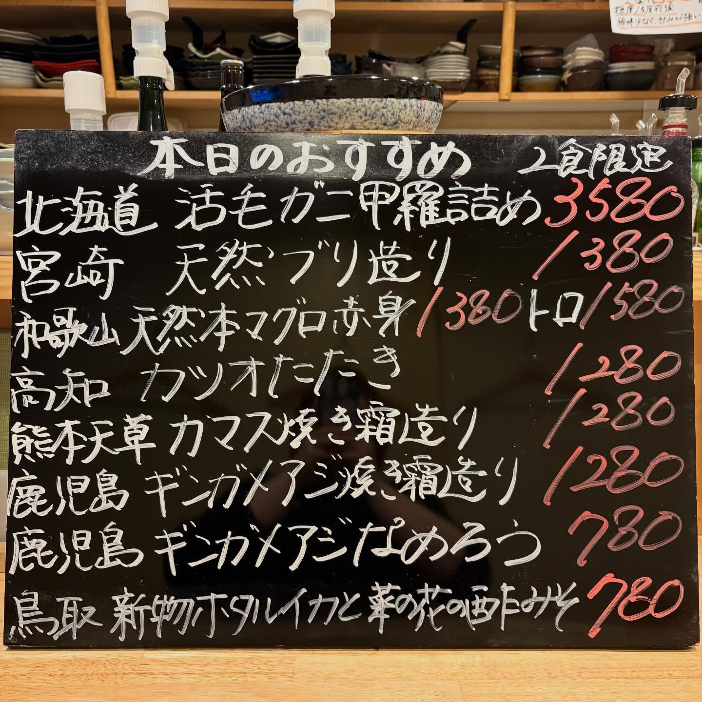 本日のおすすめ ︎鹿児島 ギンガメアジ焼き霜造り ︎宮崎 天然…
